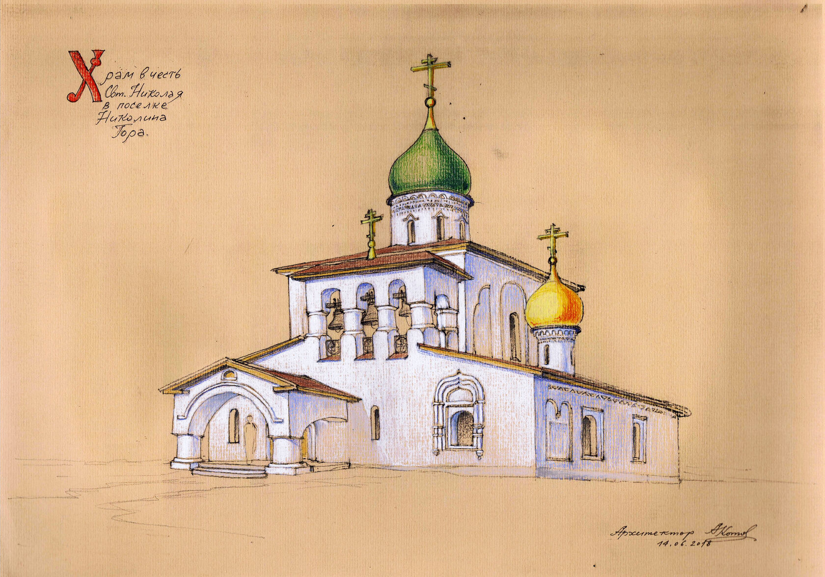 Проект храма в честь Свт. Николая на Николиной Горе выполнен с использованием форм псковской архитектуры. При проектировании храма за основу мною был взят образ и масштаб одного понравившегося мне псковского храма, это - церковь Воскресения со Стадища во Пскове (1532 - 1533).